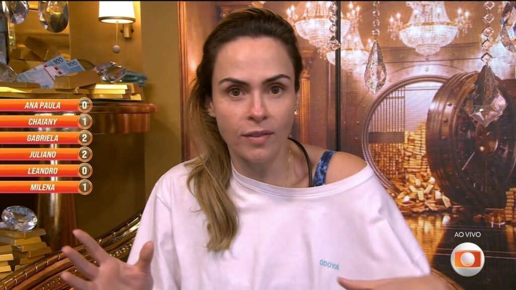 Ana Paula reagiu às críticas pedindo que a advogada parasse de segui-la pelo cômodo. “Não me usa de palco, não. Você adora conversar sozinha, gata”, disparou a jornalista, enquanto Jordana insistia que a oponente não tinha argumentos para sustentar sua postura.