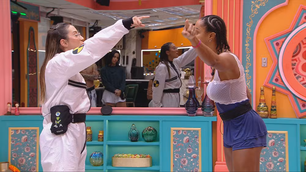 A discussão esquentou, com Renata acusando Aline de não ouvir os outros e baixar o nível das conversas. “O teu problema não é dar opinião, é que você não escuta nossas opiniões. Seu problema é que você não escuta o que a gente tá falando!”, disse Renata.