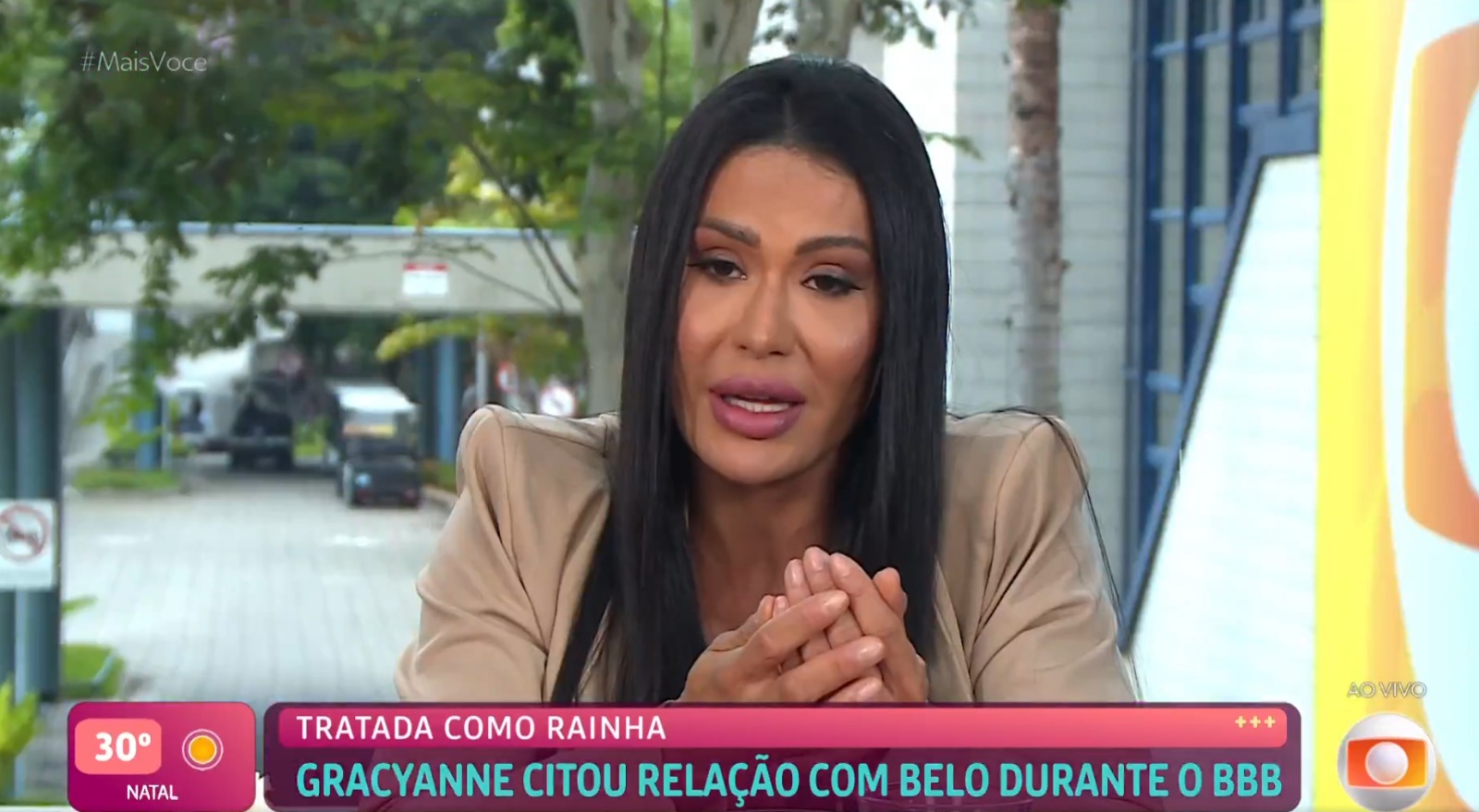 Após sua eliminação do BBB 25, Gracyanne Barbosa participou do café da manhã no Mais Você, onde conversou com Ana Maria Braga sobre sua relação com Belo e seu depoimento polêmico no documentário Belo, Perto Demais da Luz, do Globoplay.