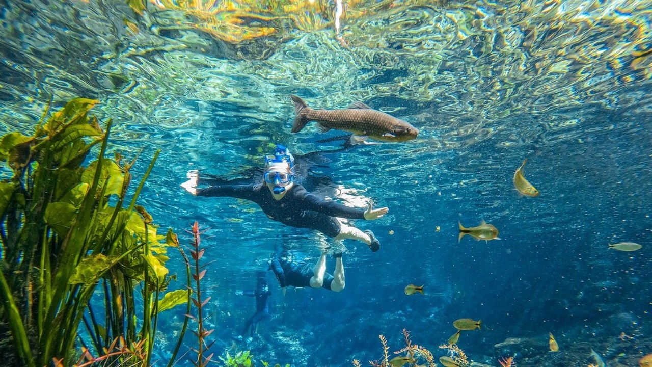 Flutuação em Bonito permite o contato direto com a natureza e a rica vida aquática dos rios cristalinos. Foto: Divulgação