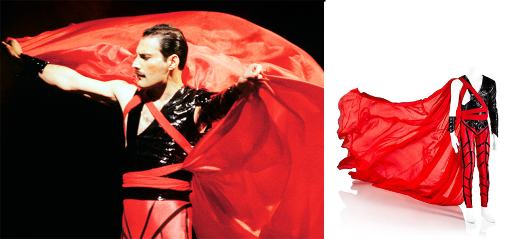 Grandes trajes mais importantes foram garantidos, como o icônico macacão branco com asas do deus Mercúrio, acompanhado das botas brancas que podem ser vistos no vídeo Bohemian Rhapsody, o traje “The Black Queen”, usado no show “A Night at the Opera”. Outro figurino lendário é o prateado de paetês usado na turnê “News of the World”. Além disso, há também o casaco de pele usado na apresentação no programa “Top of the Tops” quando cantou “Killer Queen”.