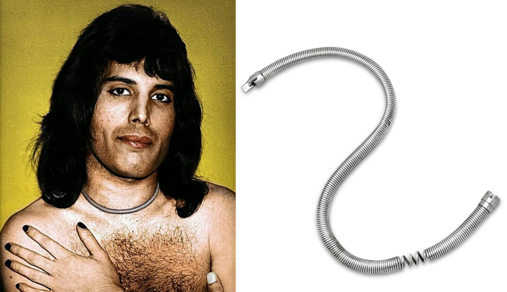 O item mais pessoal é um colar feito de mola usado por Freddie diariamente, seu preferido na época.