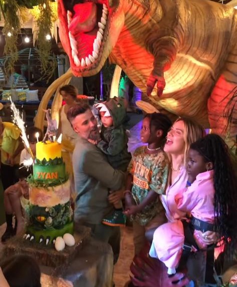 Para comemorar a data especial o teme escolhido foi dinossauros, o aniversariante é apaixonado pelos animais. O local recebeu réplicas dos bichos, além de ovos gigantescos, árvores e flores, que imitaram a natureza. Mostrando sua paixão pela temática, o menino foi para festa segurando alguns dinossauros de pelúcia nas mãos. O casal chegou junto com os três filhos: Titi (9), Bless (7) e Zyan.