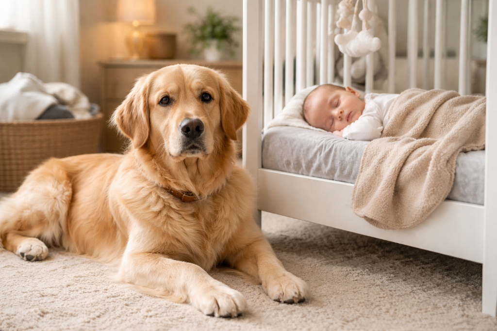 Cachorrinha surpreende ao mudar com chegada de bebê