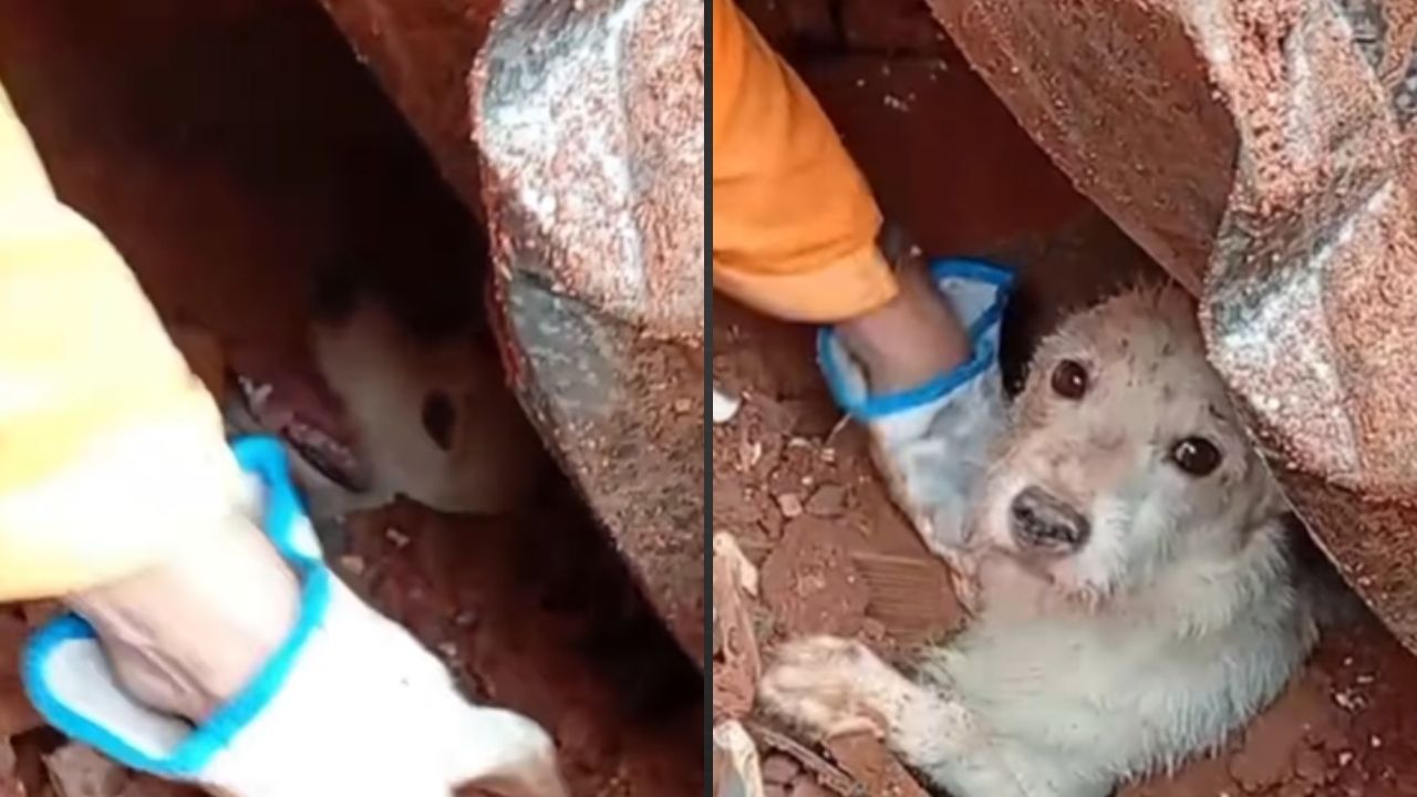 Cachorro é resgatado com vida após desabamento, e vídeo emociona nas redes