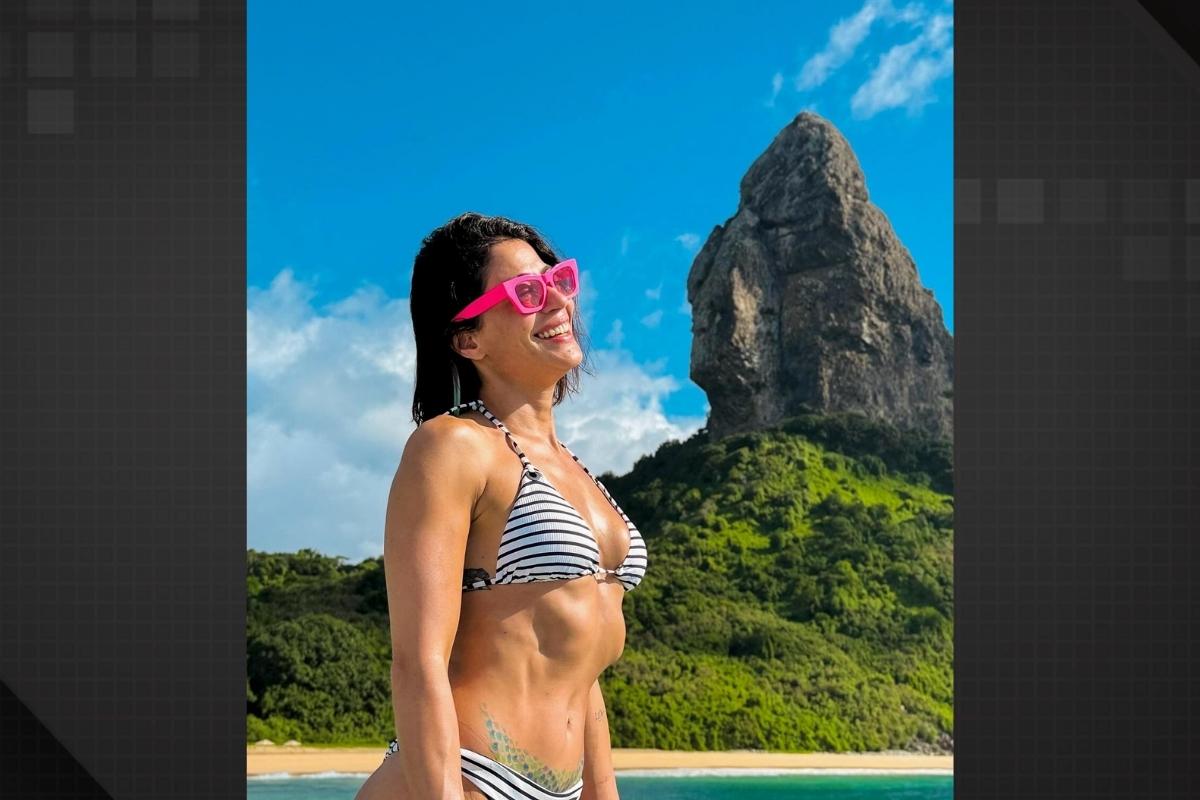 Carol Castro posa de biquíni em Noronha e exibe nova tatuagem na barriga
