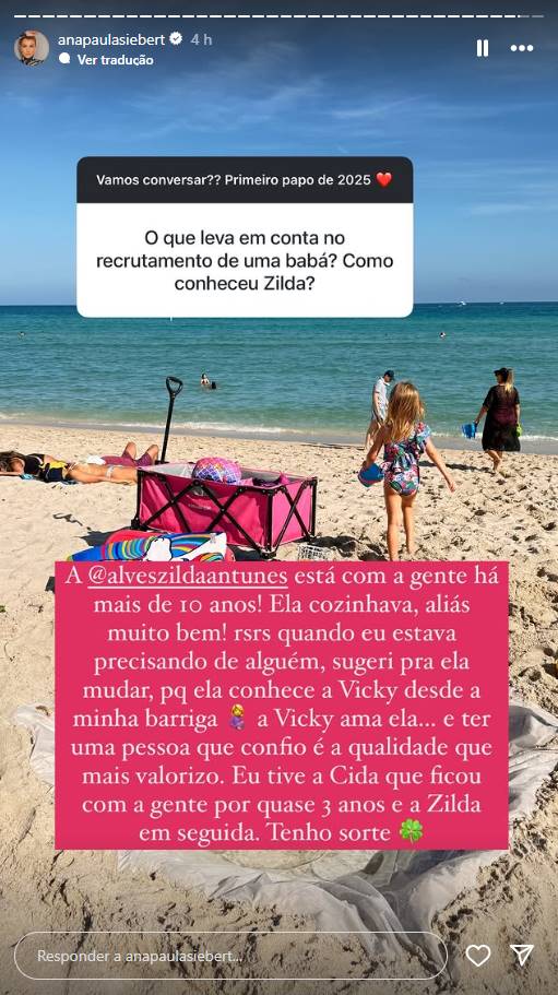 Escolher uma babá não é uma tarefa simples para os pais, e a confiança é frequentemente listada como o critério mais importante nesse processo. No caso de Ana Paula, a familiaridade de Zilda com a rotina da casa e sua conexão com Vicky contribuíram para fortalecer a confiança. “A Vicky ama ela. E ter uma pessoa em quem confio é a qualidade que mais valorizo”, destacou Ana Paula.