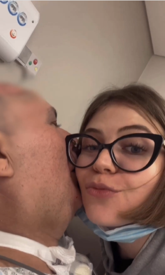 Baixista Mingau dá beijo na filha durante recuperação no hospital