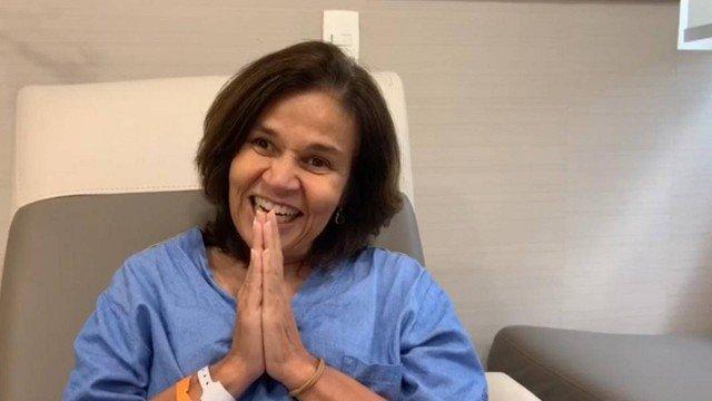 A atriz e comediante, de 48 anos, apresentou melhora em seu quadro clínico nos últimos dias. Ela segue internada na Unidade de Terapia Intensiva (UTI) do Hospital Albert Einstein, em São Paulo, porém já retirou os tubos e está lúcida. De acordo com informações obtidas pela coluna da jornalista Fábia Oliveira, do jornal O Dia, a artista está meio sonolenta, mas consegue se comunicar de maneira coerente.