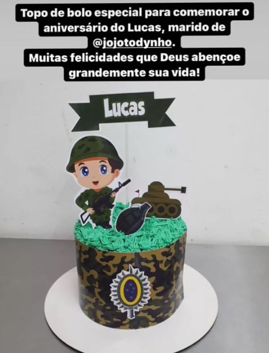 Logo em seguida, Jojo aproveita para mostrar a surpresa que fez de aniversário para Lucas quando ele chegou do trabalho. Ele completou 22 anos e ganhou até um bolo personalizado.