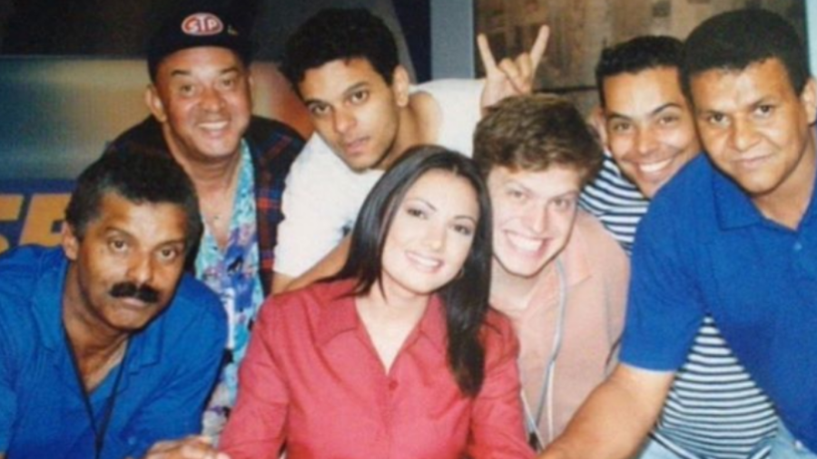 “Essa é das antigas…dos meus tempos de SPTV, o jornal local de São Paulo. Eu e a turma do estúdio. Trabalho em TV é trabalho em equipe nos velhos e novos tempos”, escreveu Poeta na legenda da publicação.