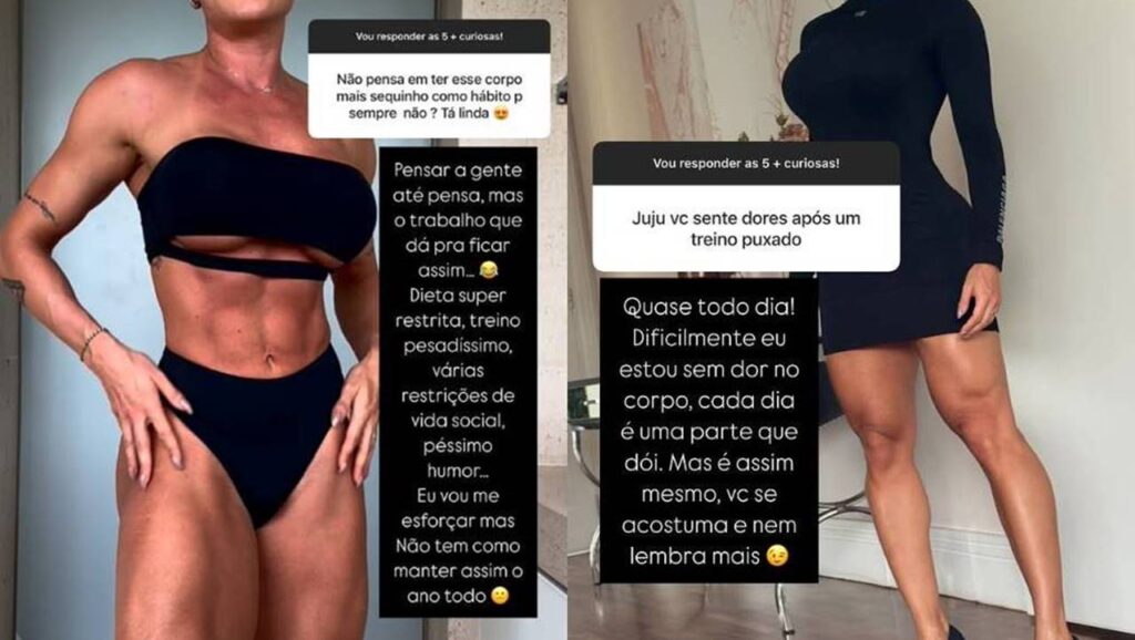 Em suas declarações, Juju deixou claro que sentir dor tornou-se parte de sua rotina. Em suas palavras, é algo a que ela se habituou. Cada dia traz um tipo diferente de dor muscular, mas a apresentadora encara isso como parte do processo necessário para atingir os resultados desejados.