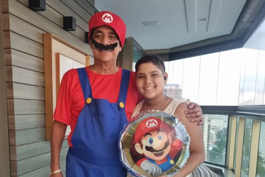 O Carnaval já passou, mas Zeca Pagodinha ainda ta no clima da folia. Acontece que o sambista compartilhou um momento de descontração ao lado do neto em que aparece vestido de Mario Bross, da série de jogos de videogame.