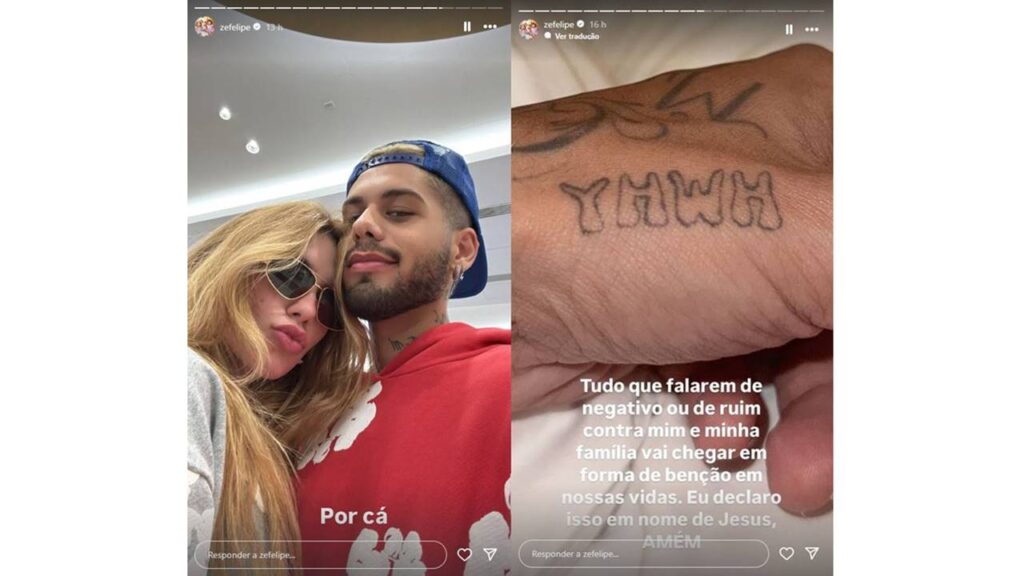 O cantor Zé Felipe, conhecido por suas músicas e por ser filho do famoso sertanejo Leonardo, utilizou suas redes sociais recentemente para abordar comentários negativos direcionados à sua família. Em uma publicação que chamou a atenção de seus seguidores, ele compartilhou uma imagem de sua tatuagem com a palavra “YHWH”, um dos nomes de Deus em hebraico. A mensagem que acompanhava a foto destacava sua crença de que qualquer negatividade lançada contra ele e sua família se transformaria em bênçãos.
