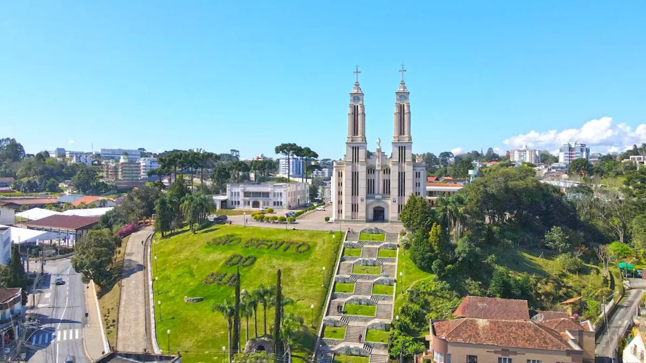 A Igreja Matriz de São Bento do Sul é um dos cartões-postais bem no coração da cidade – Foto: Prefeitura Municipal de São Bento do Sul/Divulgação