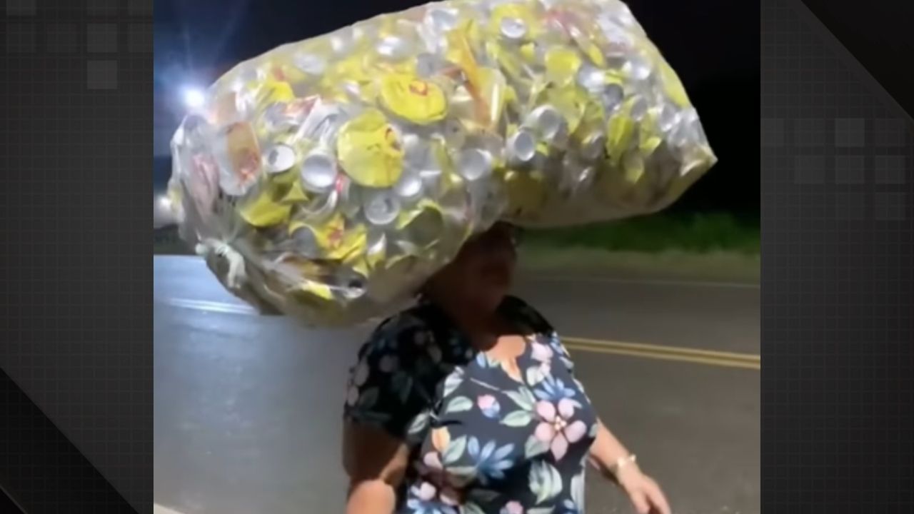 Moradora de Aracaju foi filmada à beira de estrada com carga impressionante na cabeçaDona Selma, moradora de Aracaju, em Sergipe, viralizou nas redes sociais após ser filmada caminhando à beira de uma estrada à noite com uma grande quantidade de latinhas equilibradas na cabeça. O material havia sido recolhido por ela após o Carnaval na região.