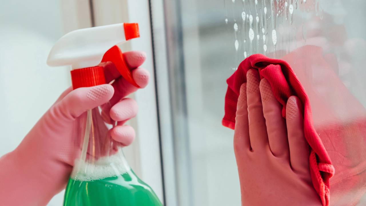 Produtos como vinagre diluído em água e panos de microfibra são ótimas opções, já que eliminam sujeira, gordura e não deixam fiapos nos vidros.