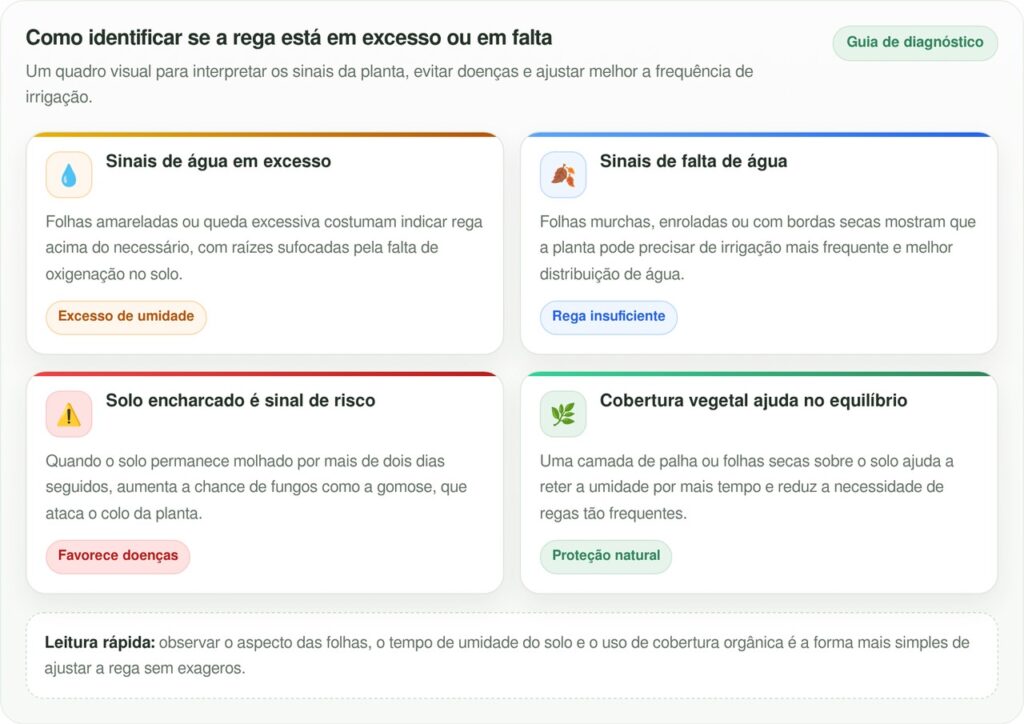 A rega ideal varia conforme o clima e o tipo de cultivo. Em vasos, o substrato seca mais rápido e exige irrigação a cada dois ou três dias no verão. No solo, duas a três vezes por semana costumam ser suficientes. O segredo está na profundidade: regas curtas e superficiais não alcançam as raízes principais do limoeiro. Prefira molhar devagar e em quantidade, permitindo que a água penetre fundo.