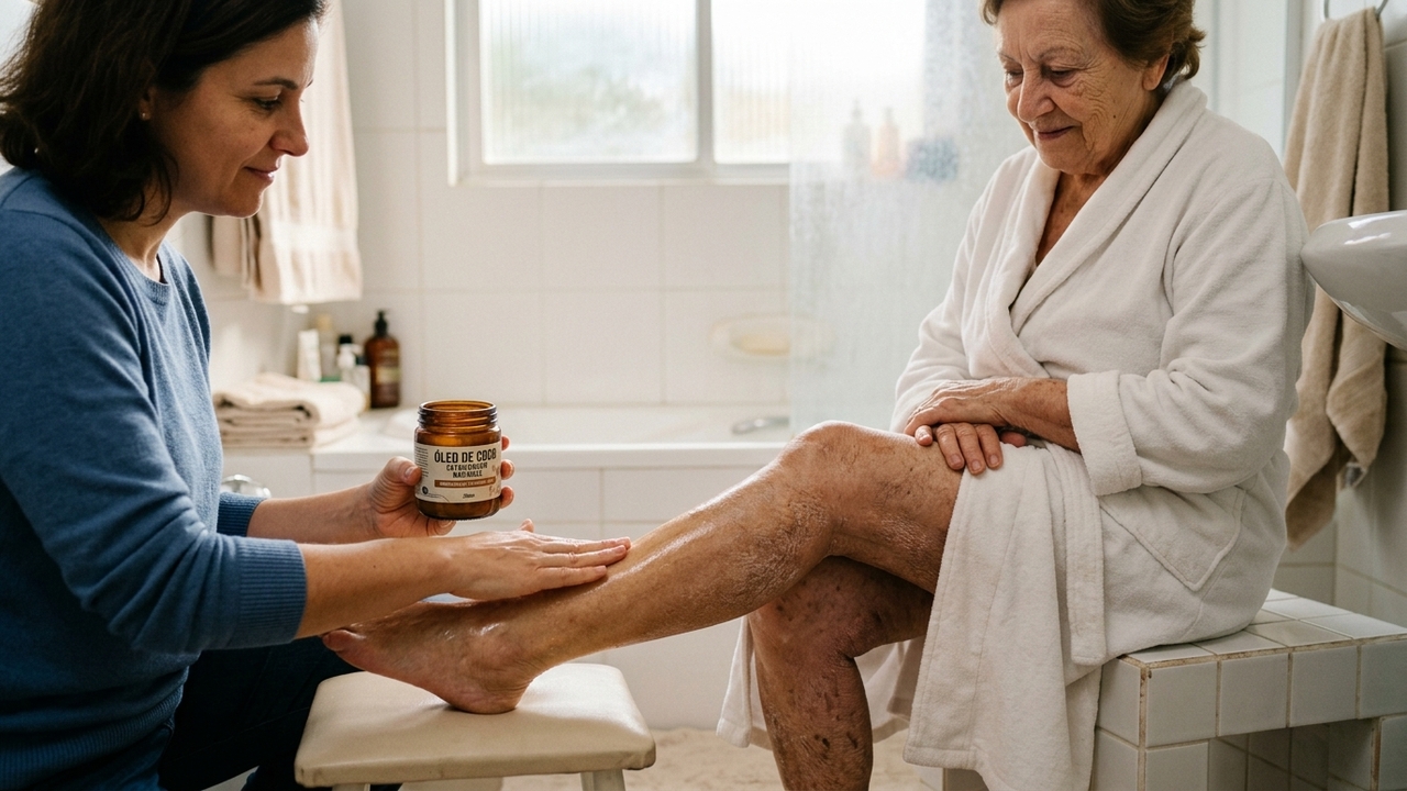Como o óleo de coco pode salvar a pele muito ressecada dos idosos após o banho