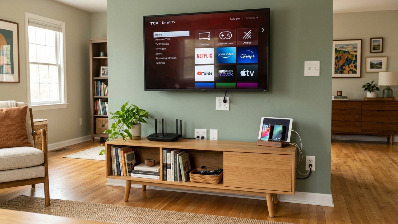 - Área da TV, internet, roteador e equipamentos de entretenimento