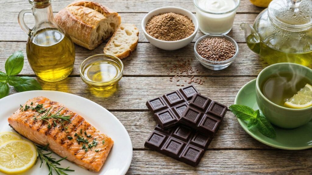 Como o ômega-3, o azeite, a linhaça, o chocolate e o chá verde contribuem?