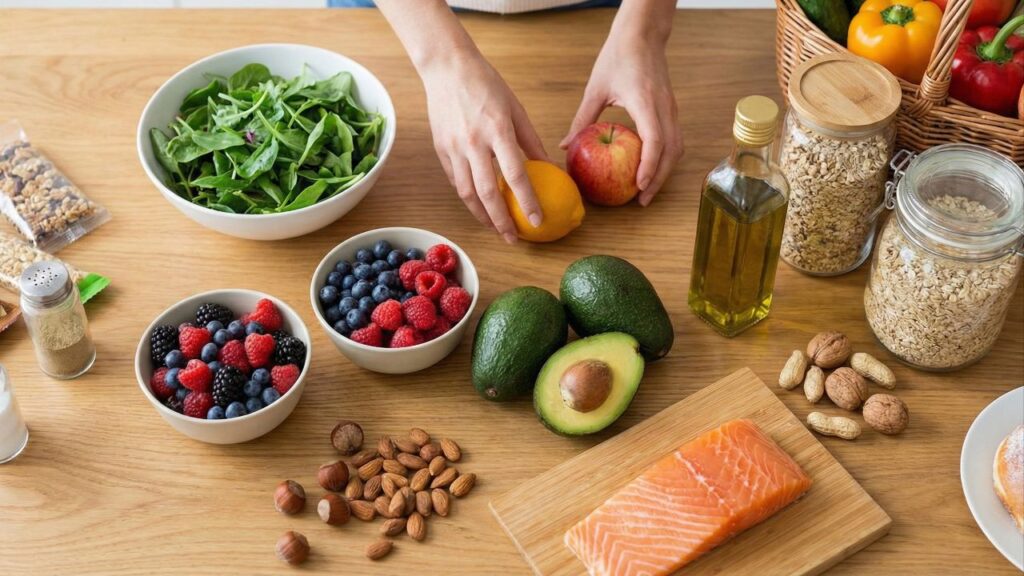 Alguns grupos de alimentos se destacam em pesquisas sobre proteção cardiovascular feminina por favorecerem o equilíbrio de colesterol, triglicerídeos, pressão arterial e função vascular. Eles atuam em conjunto, compondo um padrão alimentar protetor ao longo da vida reprodutiva e após a menopausa.