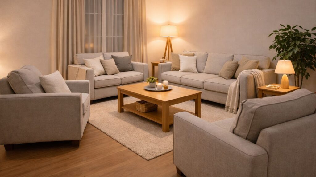 A forma como os móveis são distribuídos em cada cômodo interfere na sensação de acolhimento e na qualidade das interações. Sofás em paredes opostas, cadeiras afastadas ou móveis voltados apenas para a TV criam barreiras invisíveis à conversa e ao contato visual.