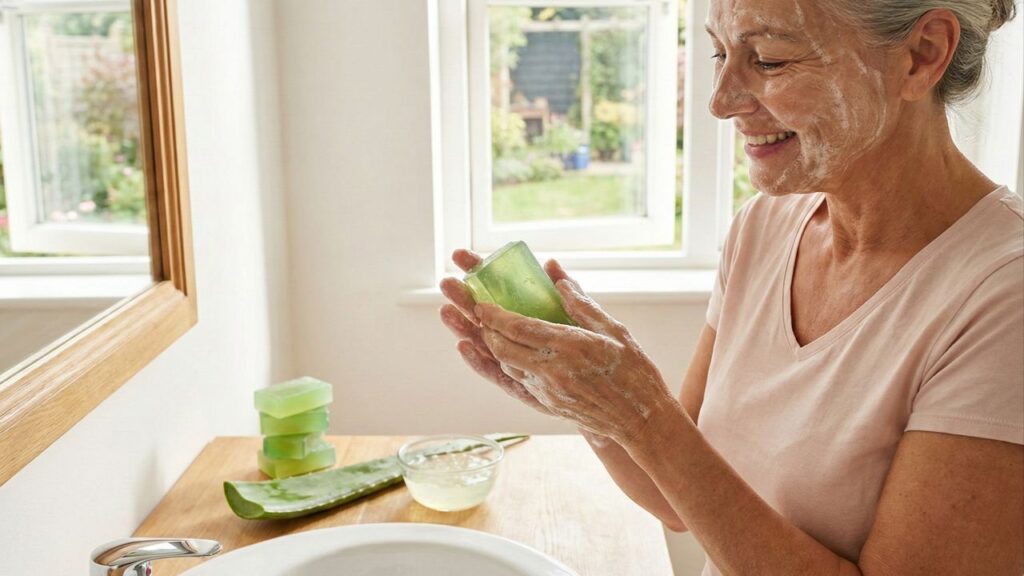 Além da limpeza suave, a babosa é rica em compostos com ação antioxidante, que ajudam a combater radicais livres relacionados ao estresse oxidativo cutâneo. Isso contribui para retardar sinais de envelhecimento precoce, como linhas finas e perda de viço, favorecendo uma aparência mais uniforme e descansada.
