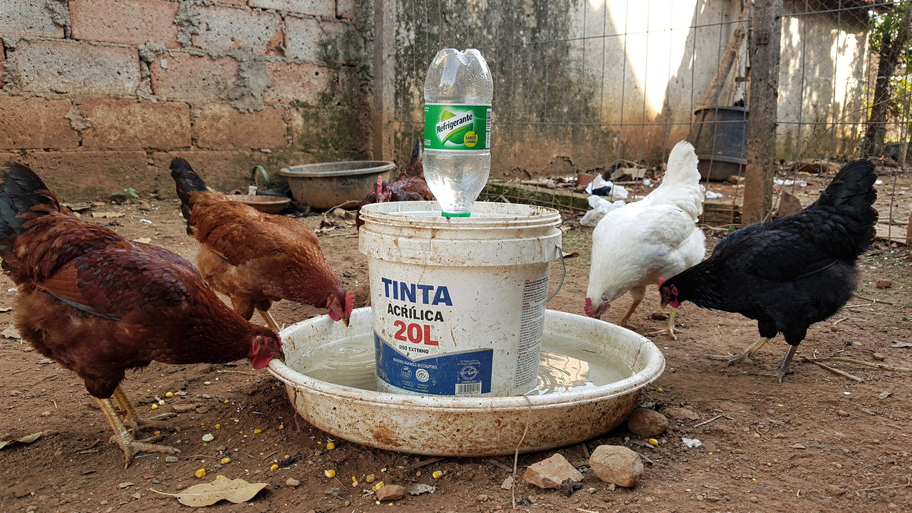 O reaproveitamento do balde de tinta e da garrafa PET reduz a necessidade de comprar comedouros e bebedouros industriais, gerando economia direta para quem cria galinhas em pequena escala. Além disso, diminui o descarte de plástico e incentiva o uso criativo de materiais que normalmente seriam jogados fora.