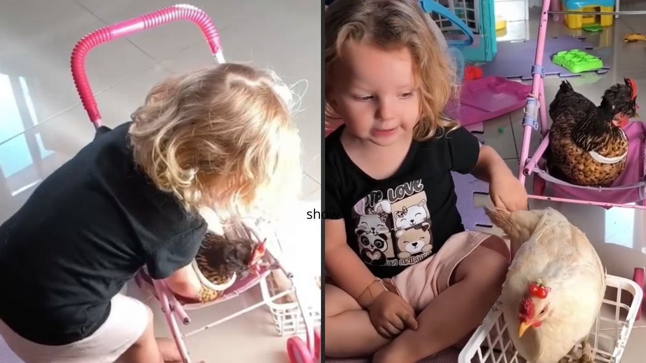 Criança de 2 anos viraliza ao cuidar de galinhas como pets; veja vídeo