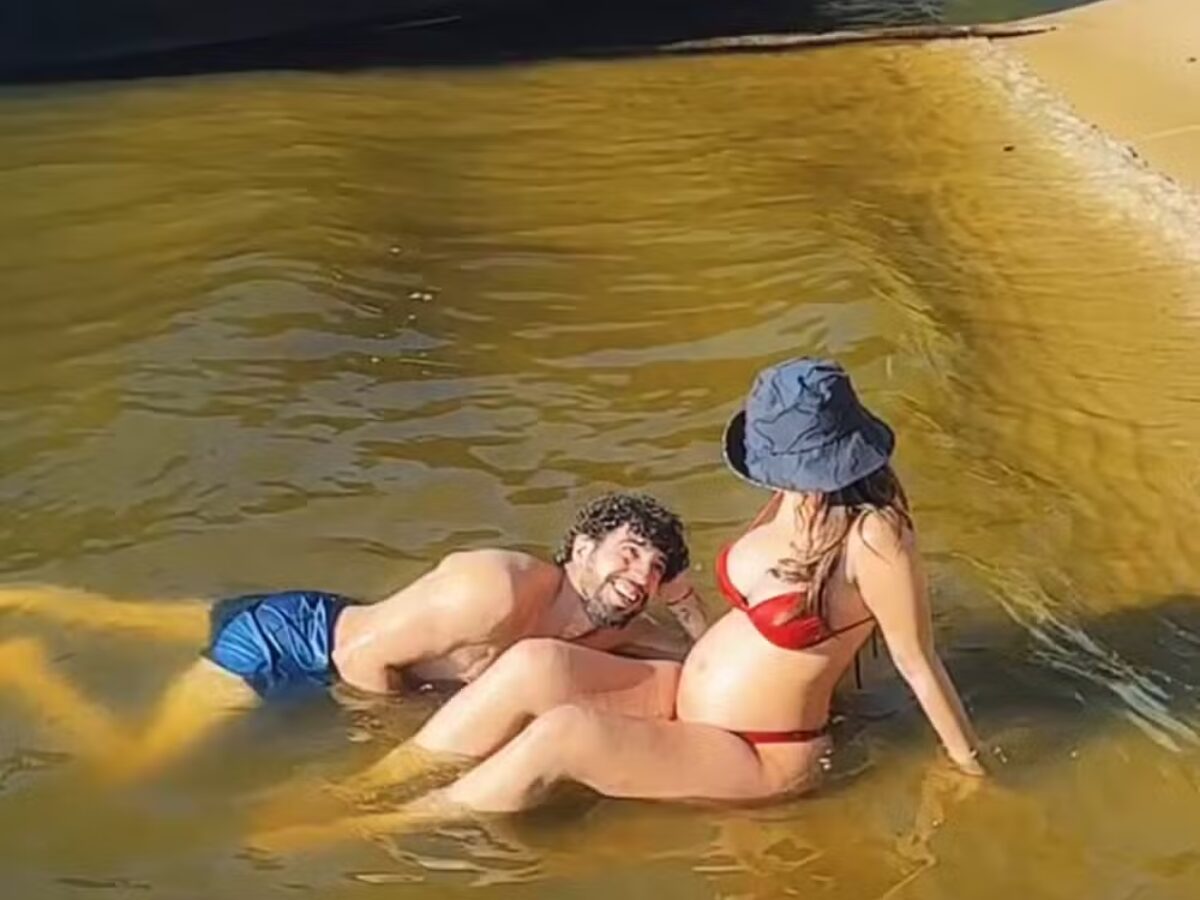 De biquíni, Rafa Kalimann exibe barrigão ao lado de Nattan: “Crescendo rápido demais”