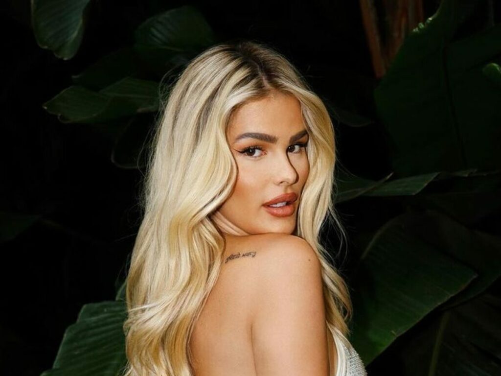 A ex-participante do BBB 24 apostou em um modelo de biquíni rendado, na cor branca. Na primeira foto, ela aparece toda plena, dando uma leve puxadinha na calcinha e ostentando o abdômen sarado.
