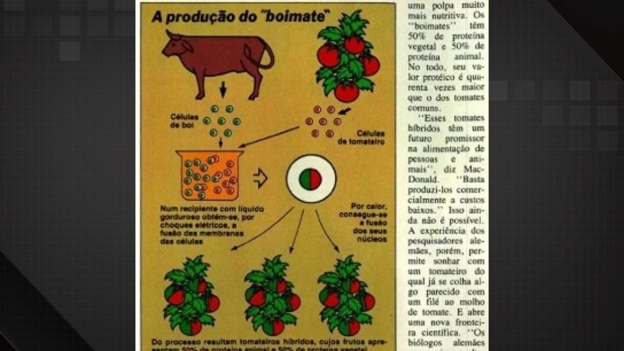 Em 1º de abril de 1983, a publicação britânica New Scientist fez uma tradicional brincadeira de Dia da Mentira afirmando que cientistas haviam conseguido fundir células de um boi com as de um tomateiro, criando um alimento híbrido. O problema foi que a revista brasileira não percebeu o tom de piada e traduziu a reportagem, publicando a descoberta do “boimate” de forma totalmente. A gafe gerou enorme repercussão na época e exigiu que a revista publicasse uma errata meses mais tarde.
