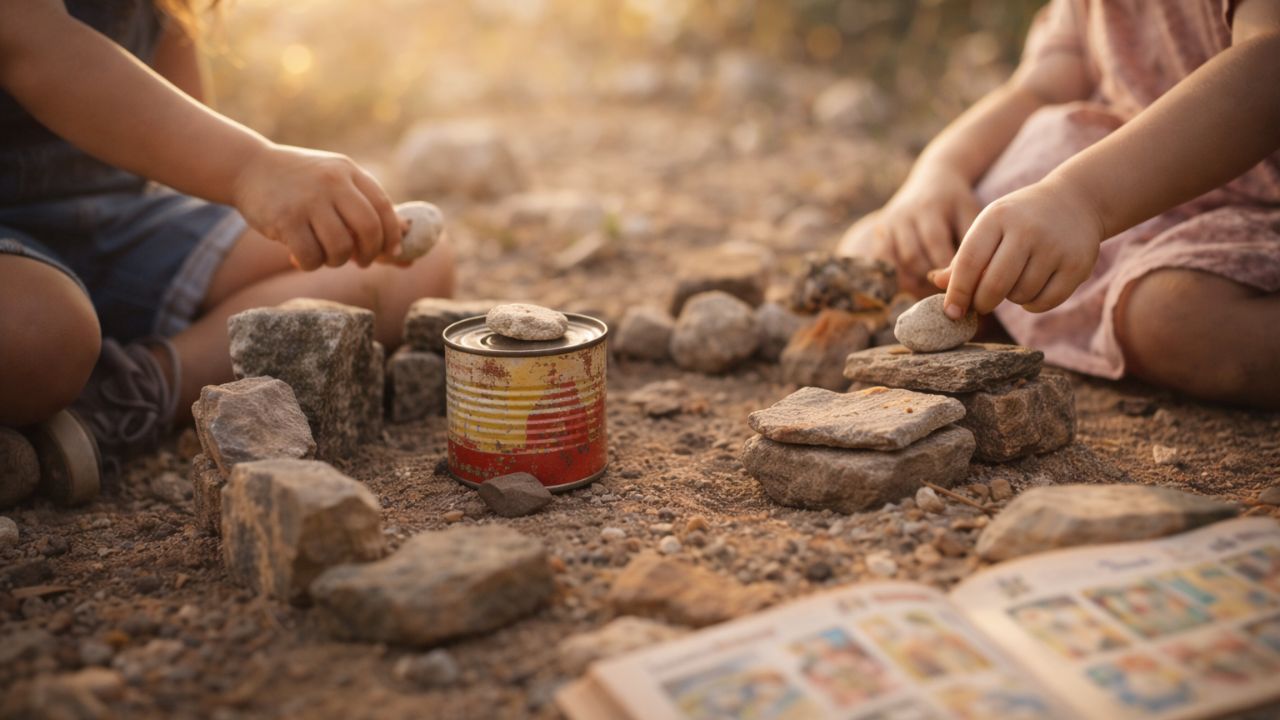 As brincadeiras de infância que não exigiam dinheiro, como casinha com lata e pedra, podiam se estender pela tarde inteira sem perder o interesse. Um dos fatores era a liberdade para criar novas situações a todo momento, com histórias que nunca precisavam terminar de forma definitiva.