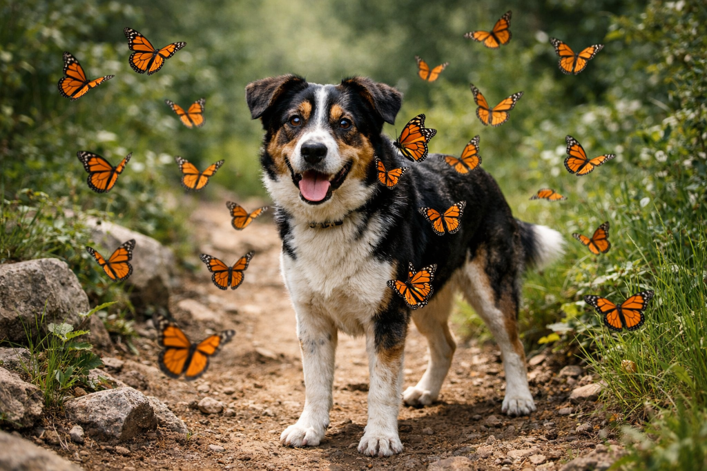Cães vivendo momentos únicos fortalecem o apelo do entretenimento pet, criando conteúdos envolventes e inspiradores. A imagem do pet cercado por borboletas se tornou um símbolo de conexão com a natureza.