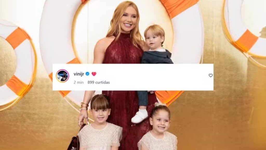 Vini Jr., de 25 anos, reagiu com um emoji de coração a uma foto publicada por Virginia Fonseca, de 26, ao lado dos filhos. A interação ocorreu nas redes sociais nesta segunda-feira (25).