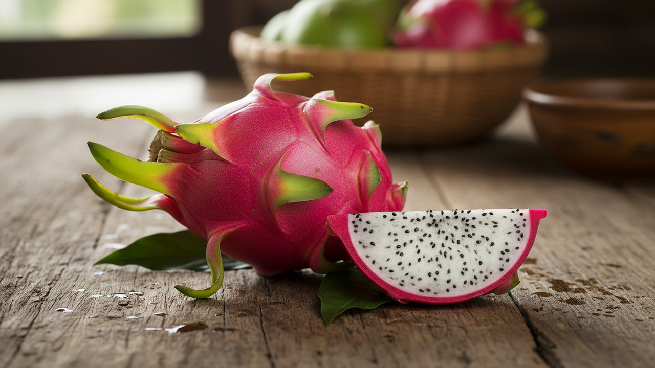 Além do aspecto ornamental, a fruta é valorizada pela polpa rica em água e sabor suave, consumida in natura ou em preparações como sucos e saladas. A casca colorida, com “escamas” características, chama atenção e desperta curiosidade em quem vê o fruto pela primeira vez.