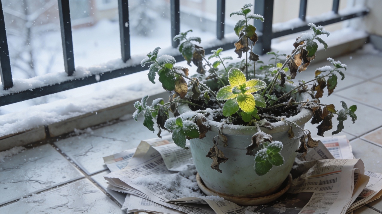 Essa hortelã-verde enfrentou o frio e se recuperou com uma proteção simples