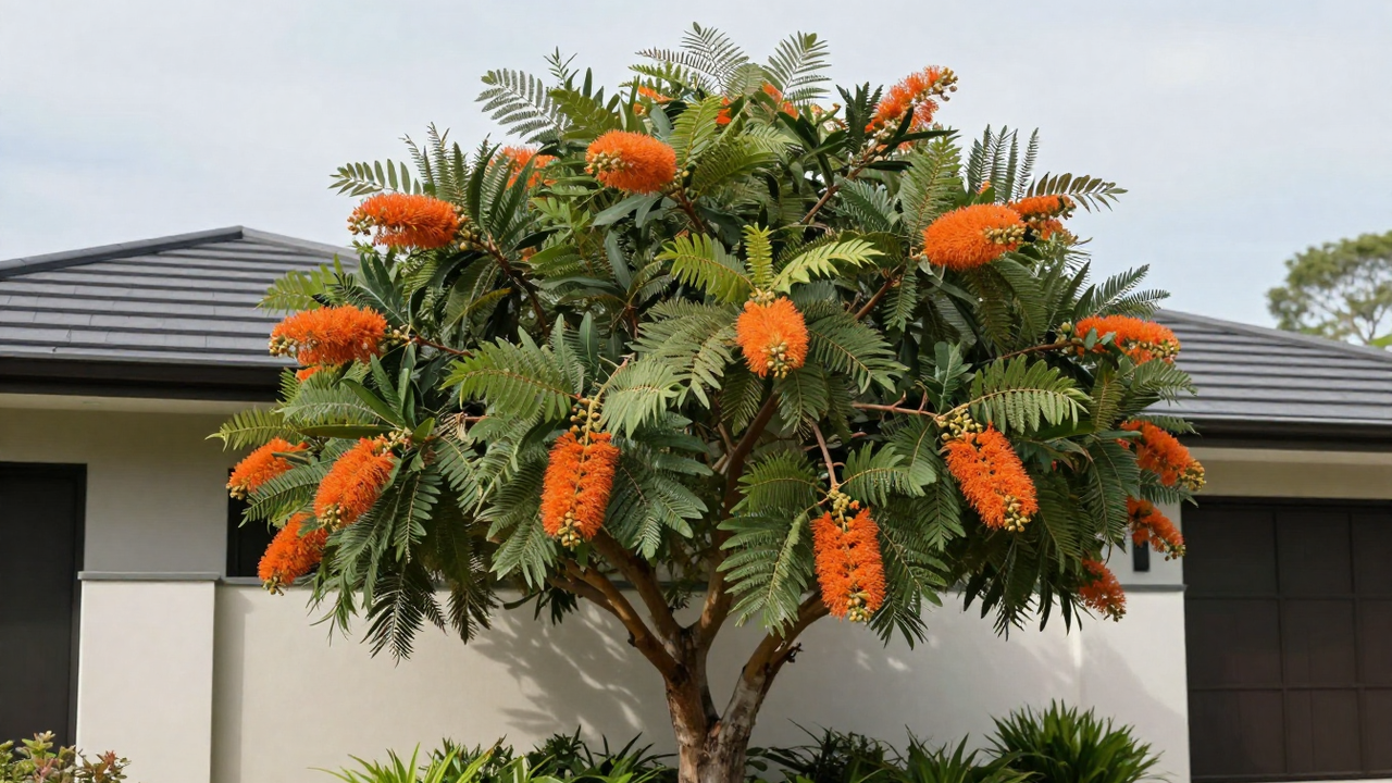 Originária da Austrália, adaptou-se bem a diversas regiões do Brasil, principalmente em climas amenos ou de altitude. As folhas recortadas, que lembram samambaias, e as flores amarelo-alaranjadas atraem pássaros e abelhas, transformando o quintal em um ambiente mais vivo, sonoro e visualmente marcante.