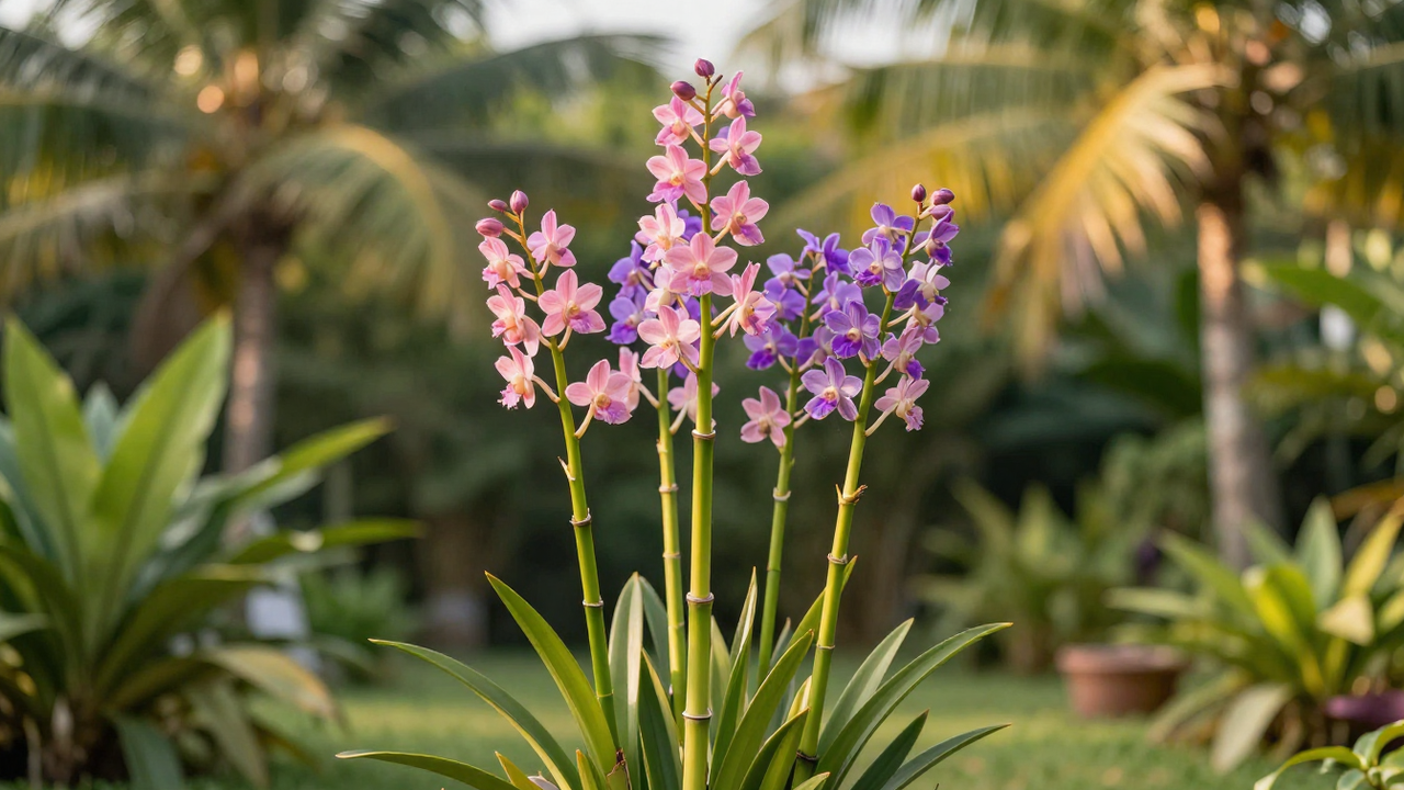 Movido pela curiosidade, descobri que a orquídea bambu é uma espécie terrestre originária principalmente de regiões da Ásia, como Índia, China e sudeste asiático. Sempre me intrigou pensar que uma planta vinda de tão longe encontrou um lugar tão natural no meu pequeno jardim tropical.