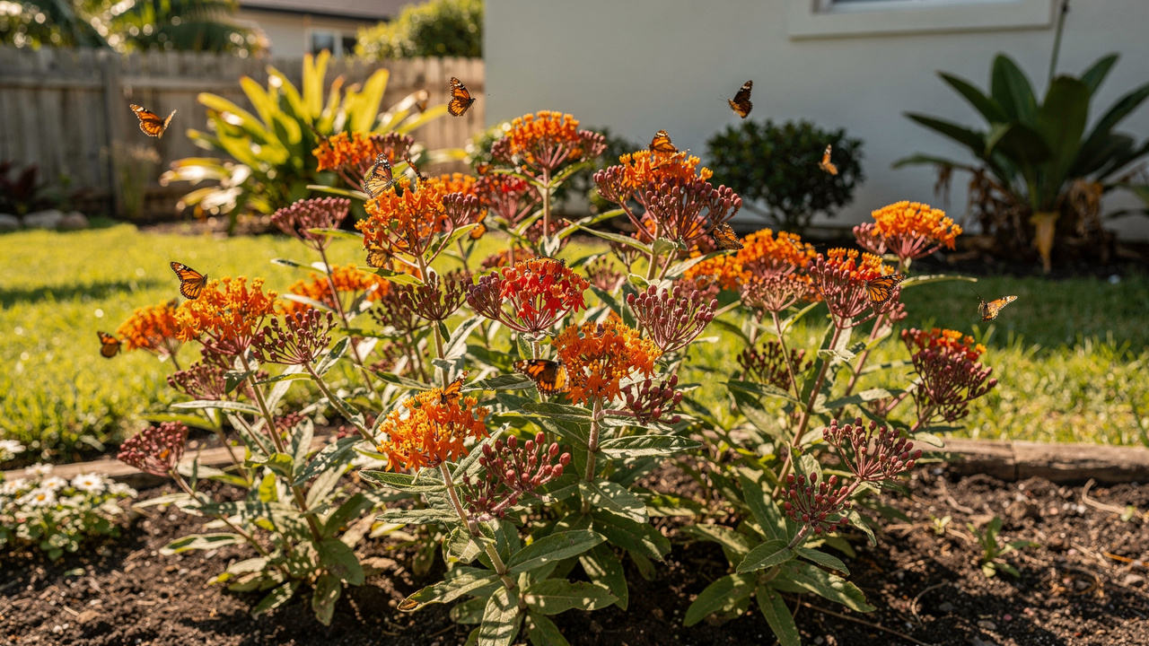 A asclepia (Asclepias curassavica), também chamada de flor-de-seda ou erva-borboleta, é uma das principais escolhas para quem deseja atrair borboletas. Suas flores em tons de laranja, vermelho e amarelo oferecem néctar para insetos adultos, enquanto as folhas servem de alimento para lagartas de algumas espécies.