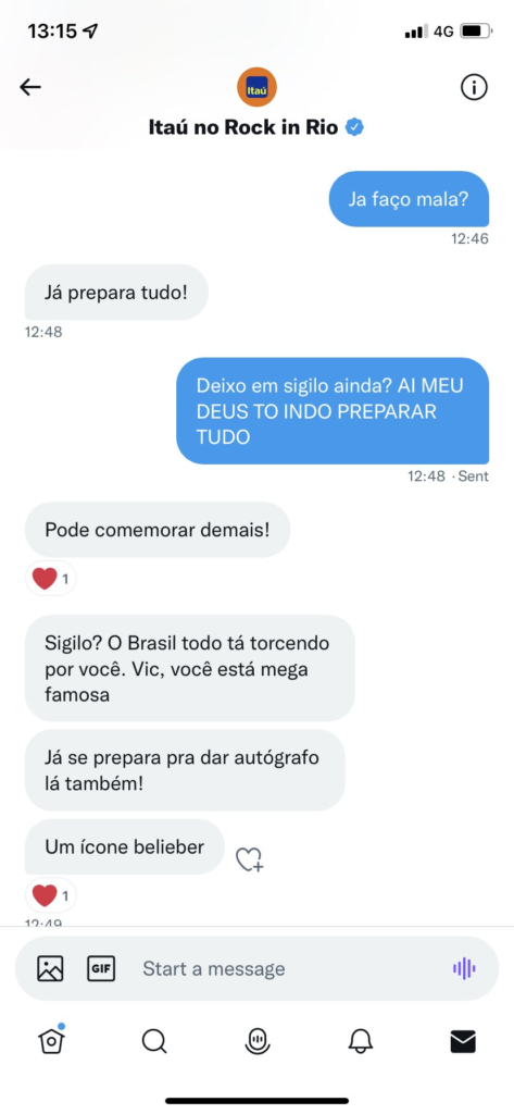 O presente foi dado por uma das marcas patrocinadoras do festival. Nas redes sociais, a jovem publicou o convite que recebeu e reforçou a emoção que já está sentindo ao saber que vai assistir um show do ídolo.