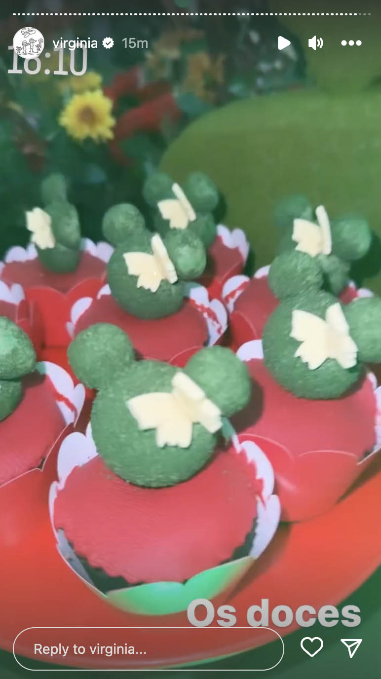 A famisa compartilhou tudo nas redes sociais e a decoração da festa acabou viralizando. O tema foi Mickey e Minnie. O bolo seguiu o tema e contou com o Mickey no topo. Os docinhos também seguiram a mesma temárica.