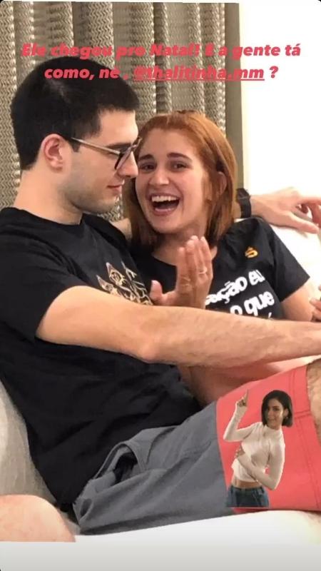 A apresentadora, que está em tratamento de um câncer no útero, postou uma foto do rapaz. “Ele chegou pro Natal! E a gente tá como, né, @thalitinha.mm?”