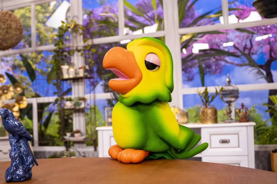 “O mais votado foi Lourito. Mas como sou sua avó, vou te chamar de Louro Mané”, anunciou Ana Maria, mostrando o crachá duplo entregue ao papagaio.