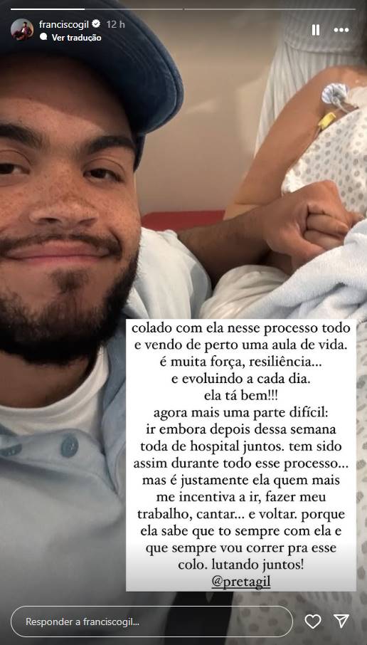 Francisco Gil compartilha momentos difíceis após cirurgia da Mãe, Preta Gil