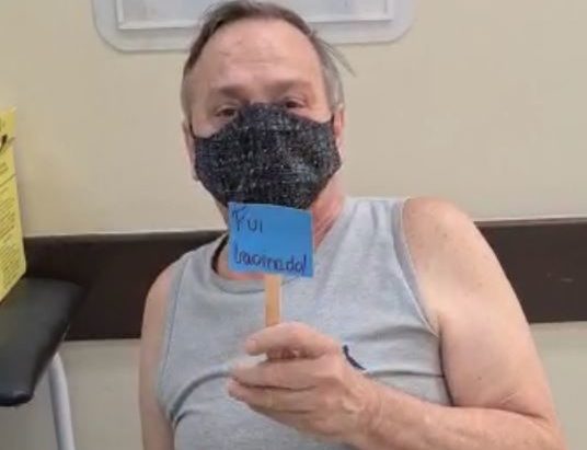 O comunicador Gilson recebeu a primeira dose da vacina contra a covid-19, na Ilha do Governador, no Rio, na tarde deste sábado (27). O apresentador do programa “Bola em Jogo”, da Super Rádio Tupi, ficou feliz ao receber a dose do imunizante. “Ai galera, fui vacinado”, disse o querido Gilsão.