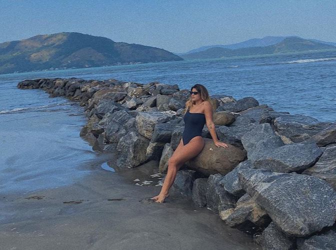 Giulia Costa posa em praia paradisíaca e beleza natural chama atenção na web