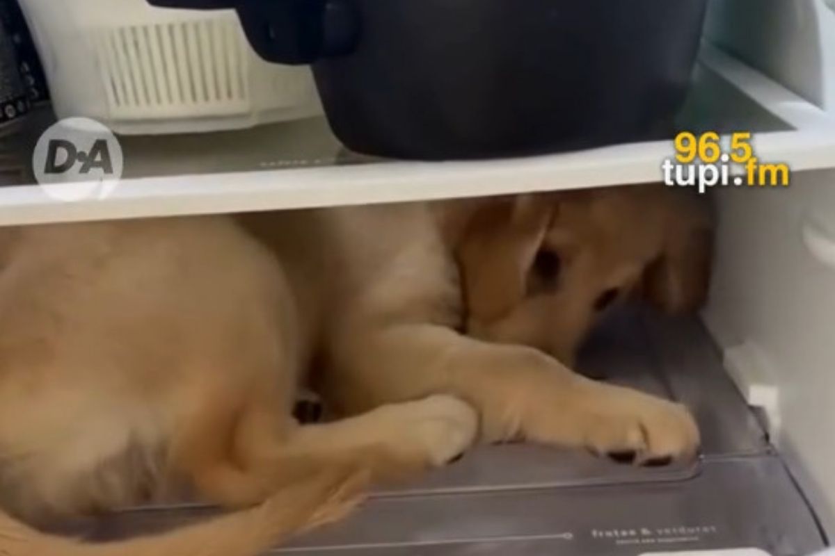 Vídeo: golden retriever viraliza ao se esconder do calor dentro da geladeira