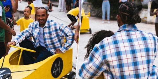Hamilton desembarca no Rio e pega táxi com Luciano Huck
